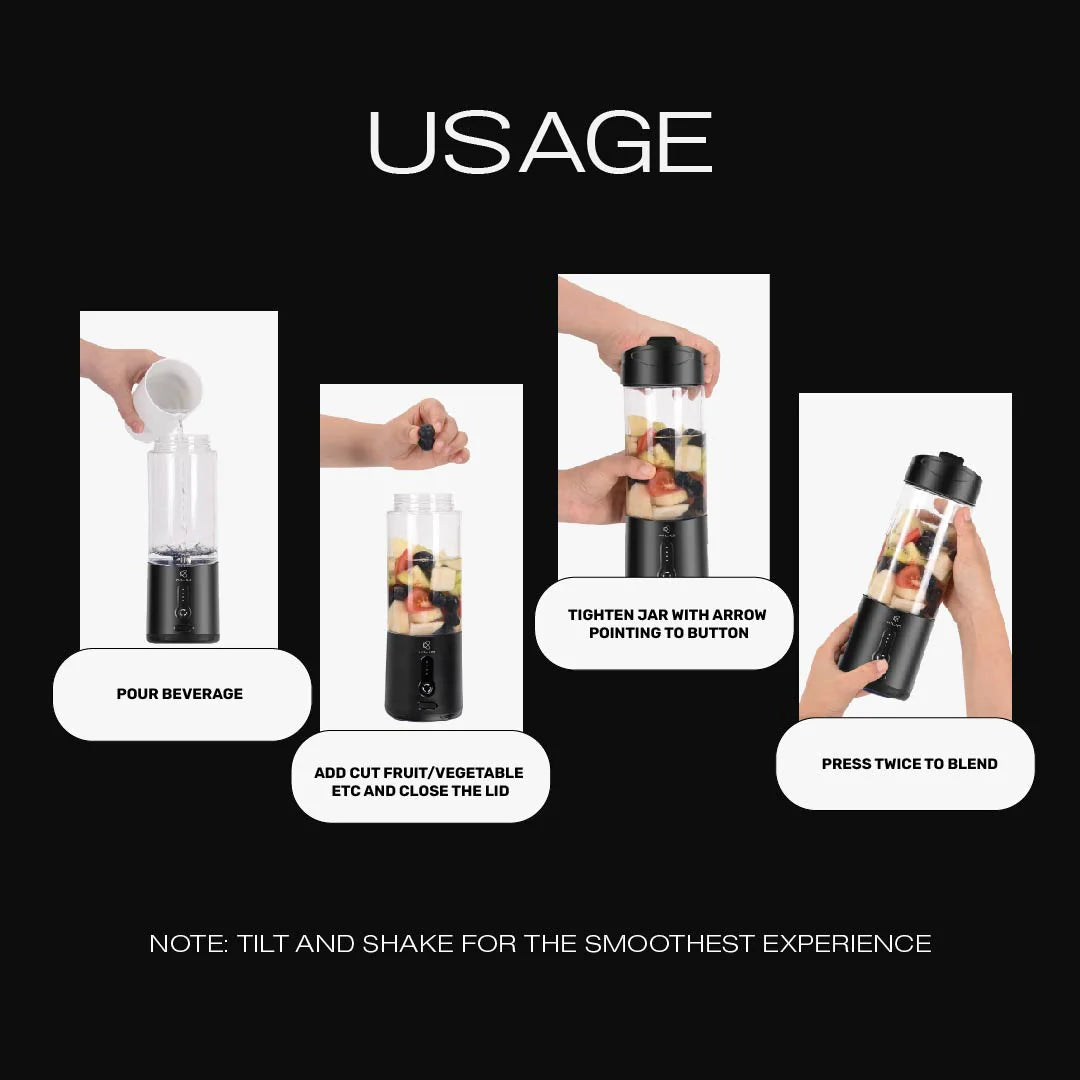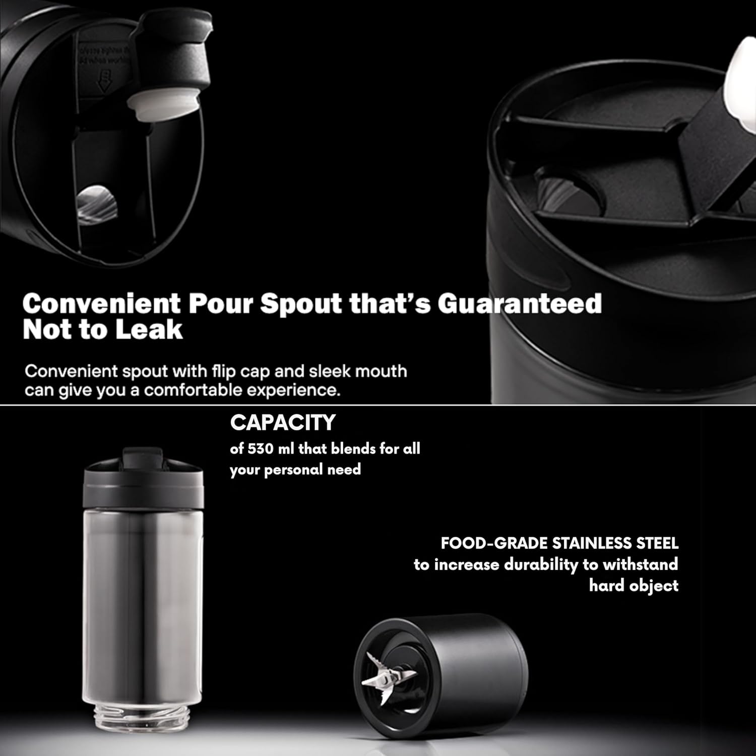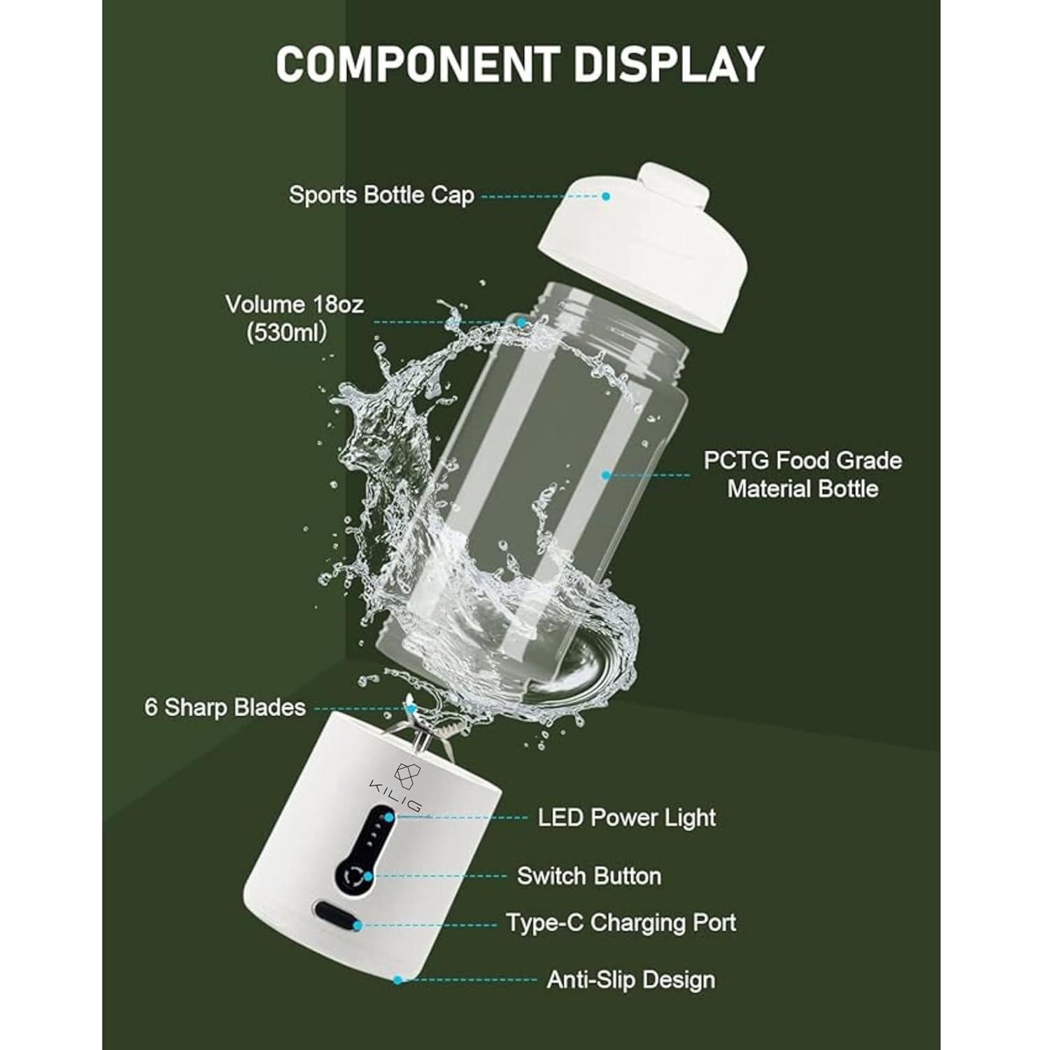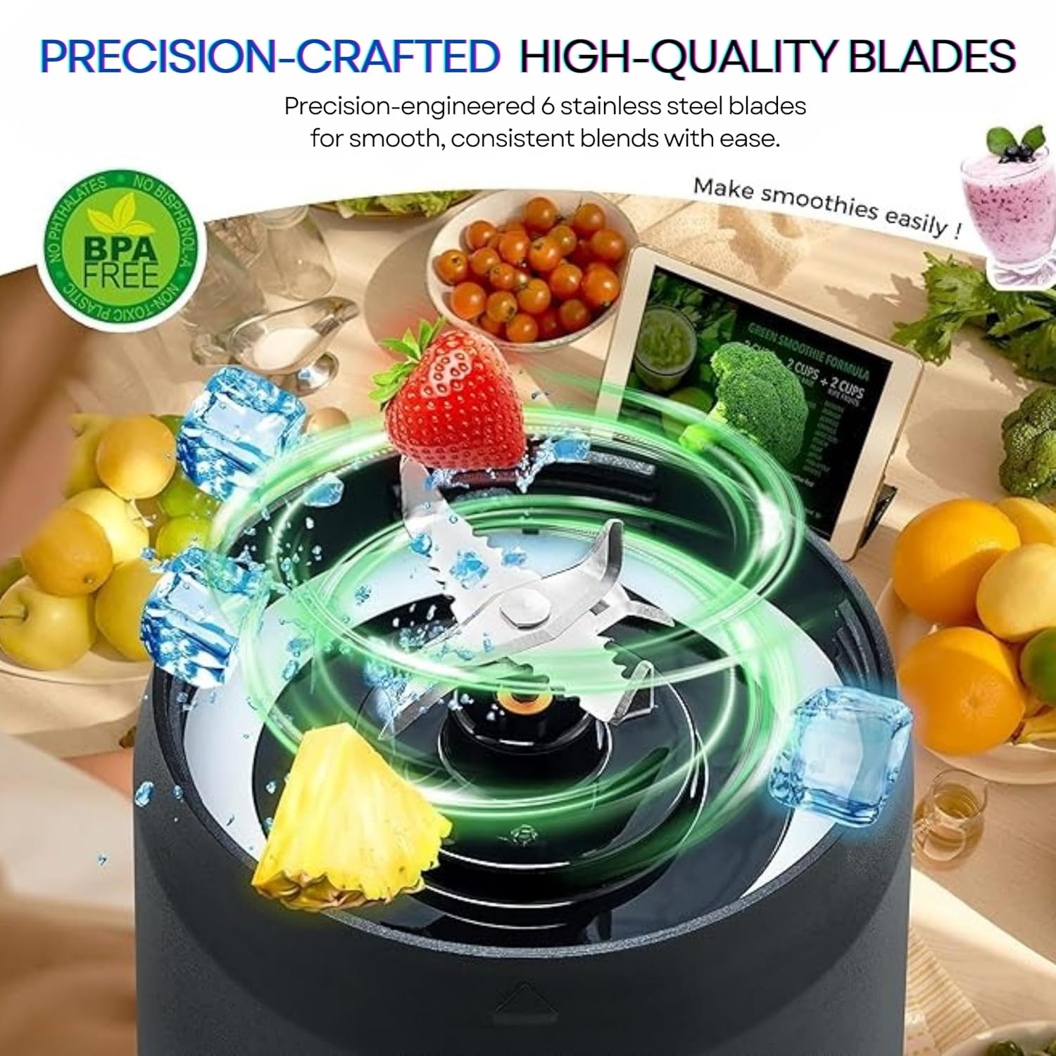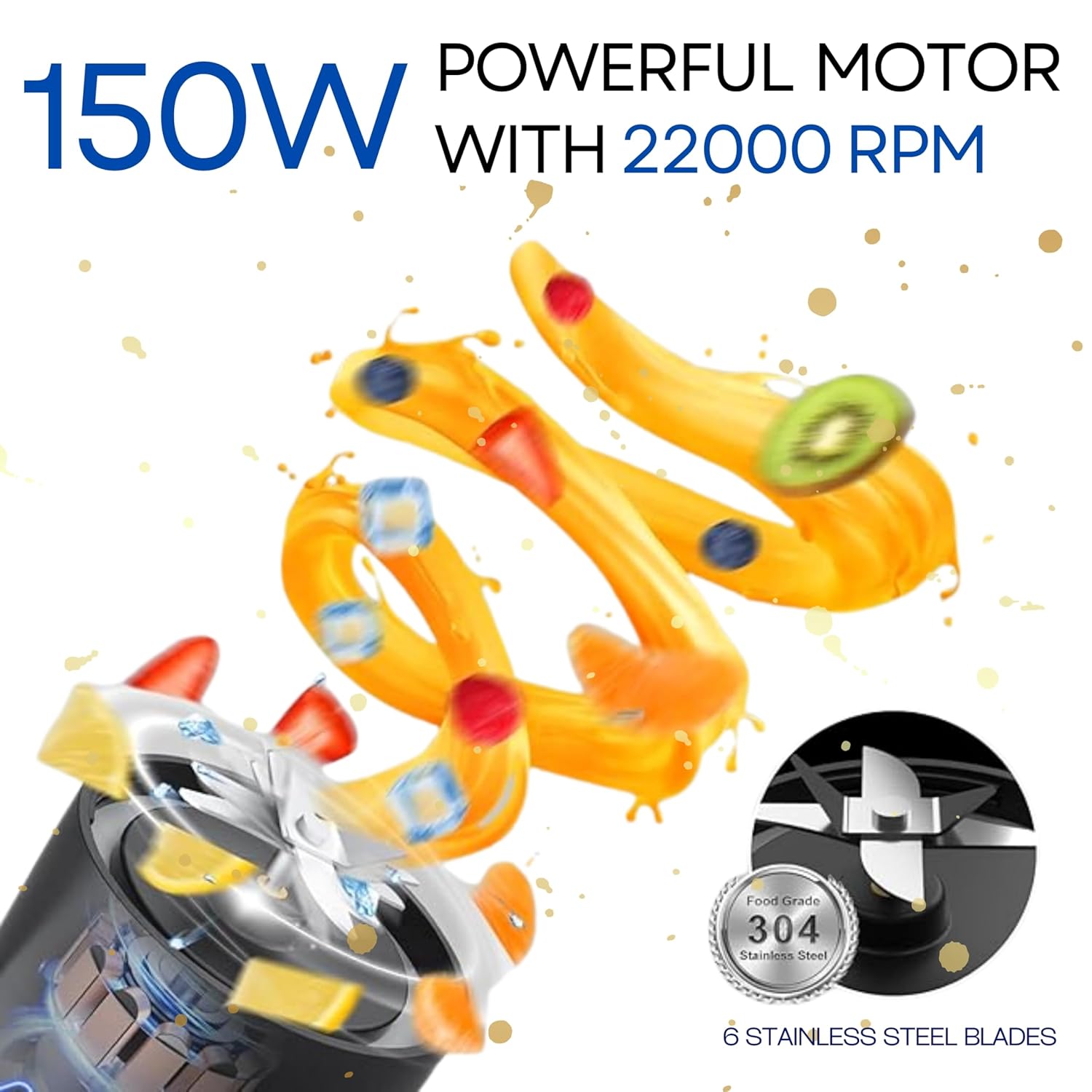 Perfect for Juices, Smoothies, Cold Coffee USB-C Rechargeable 4000mAh Battery 6-Sided Steel Blade 22,000 RPM For Home, Office, Gym & Travel