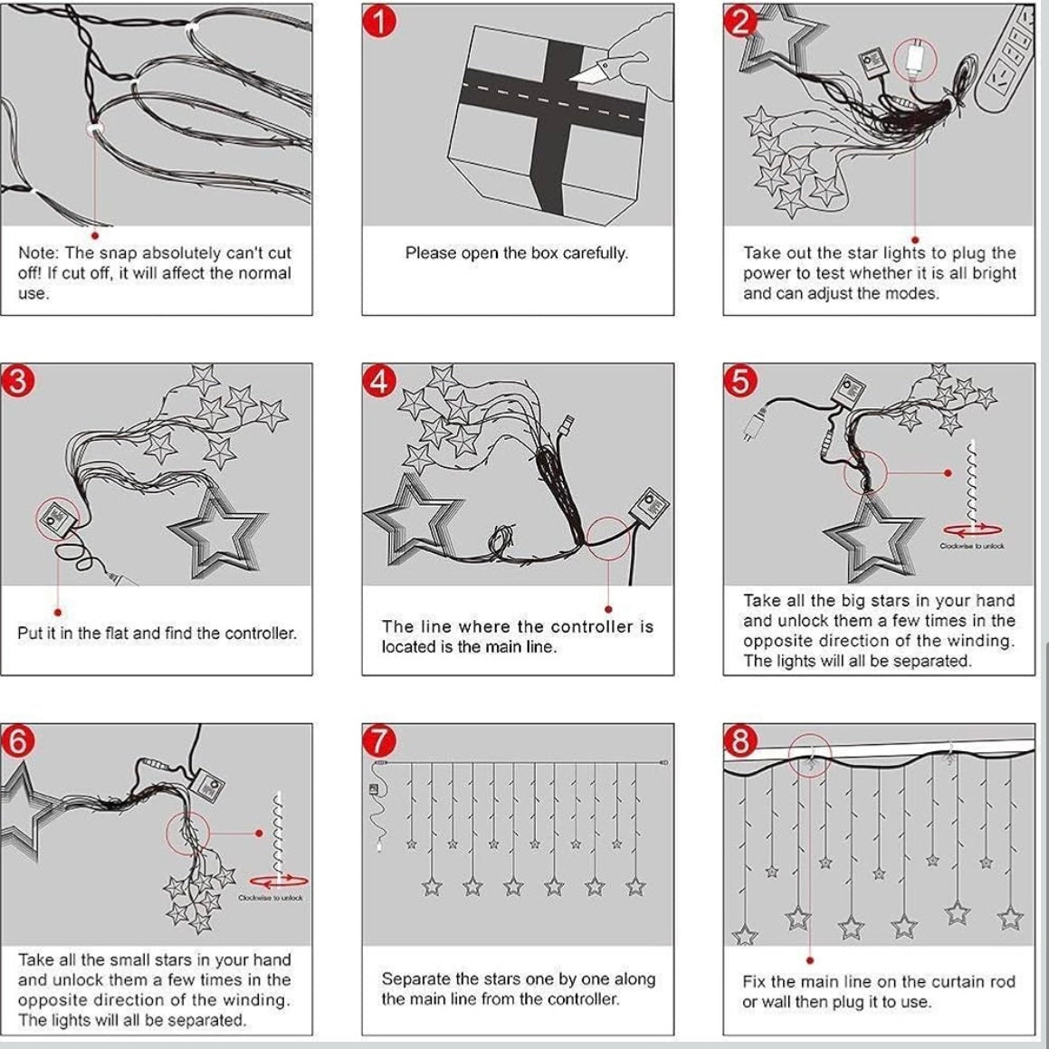 Package Contains: Star Curtain Light (12 Stars - Warm White)